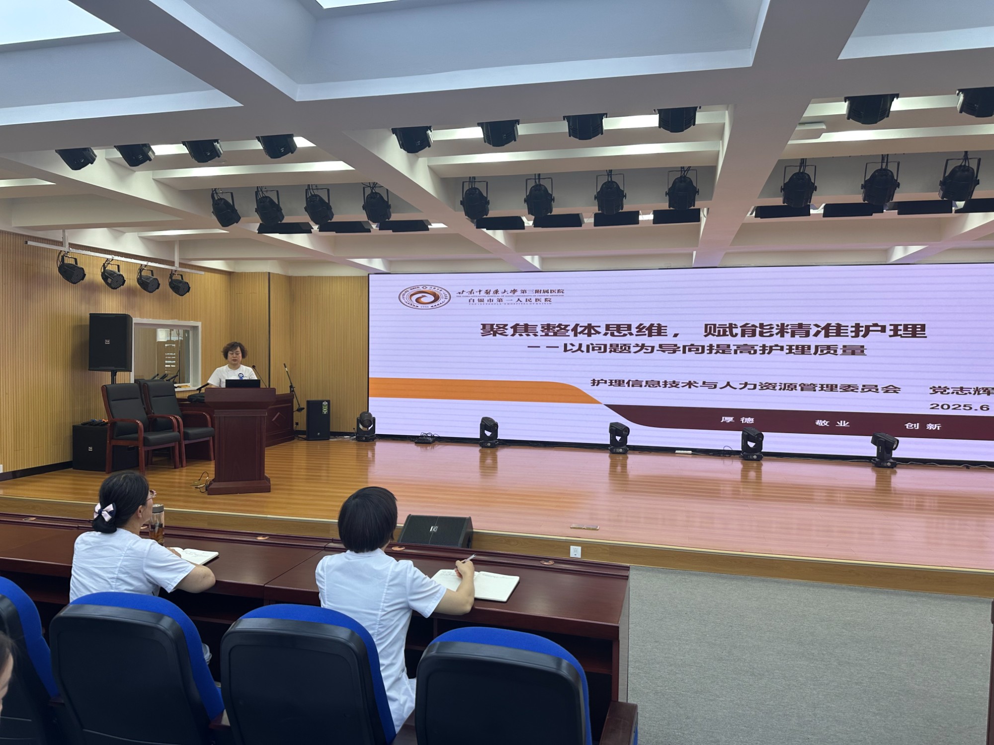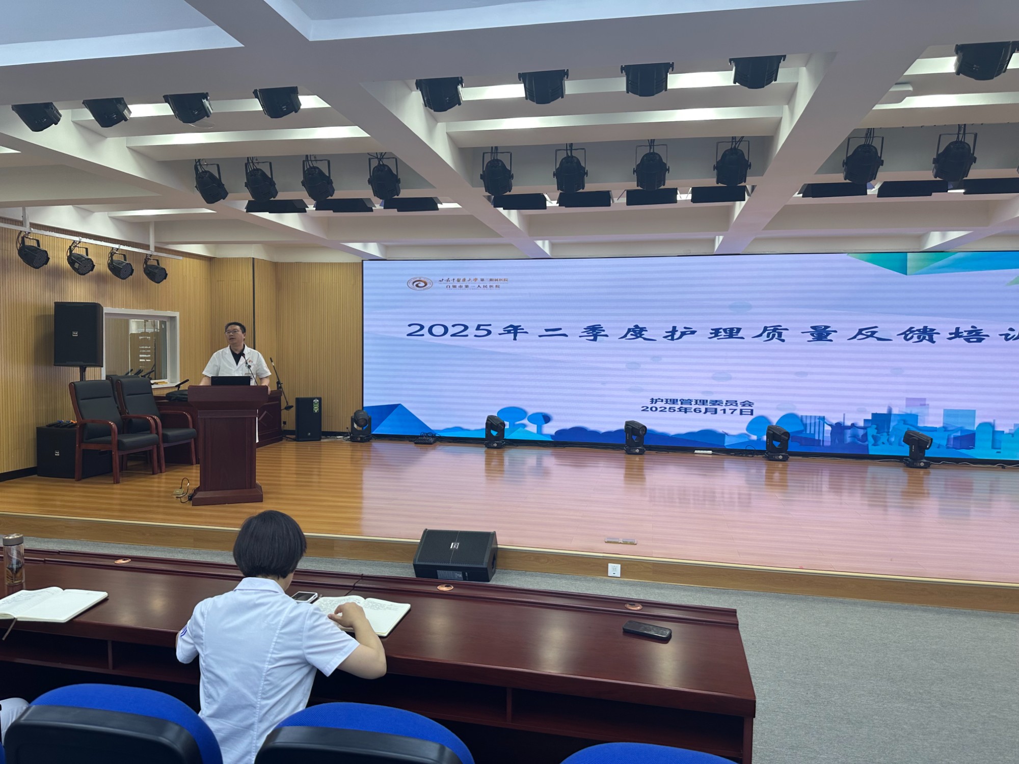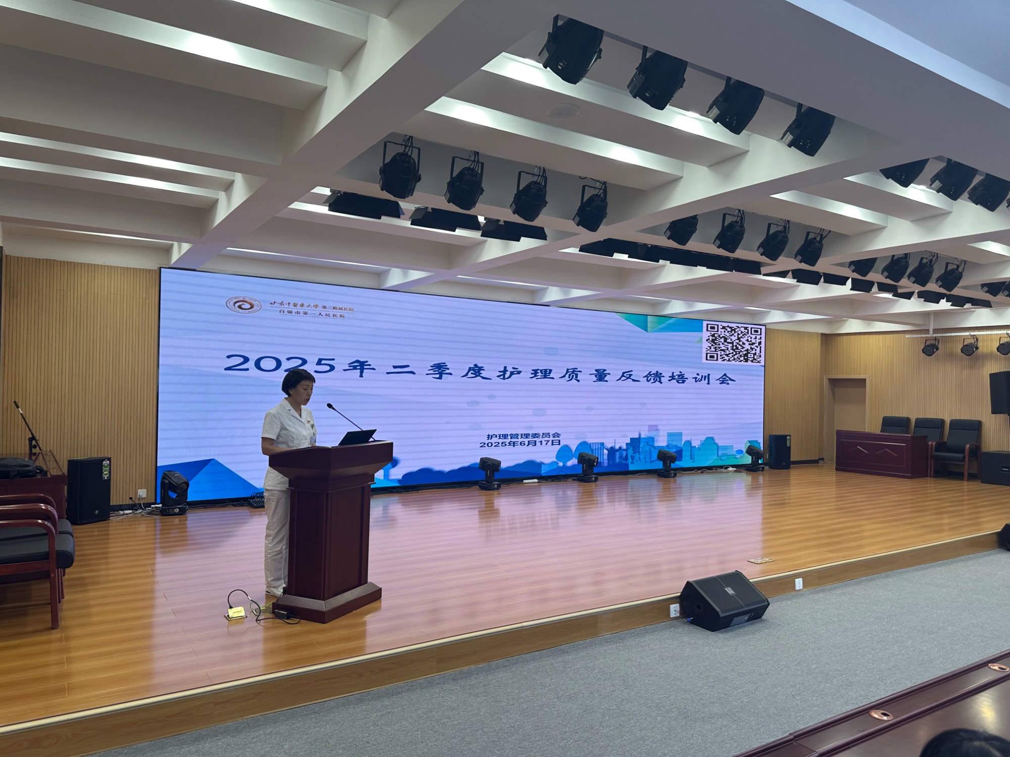 为进一步提升护理质量,强化患者安全管理,6月17日,由护理教学管理委员会牵头的第二期护理质量与患者安全培训班暨2025年二季度护理质量反馈培训会在综合楼七楼第一会议室举办。全院护士长及高层级护理骨干200余人参会,会议由科护士长苏秀翠主持。