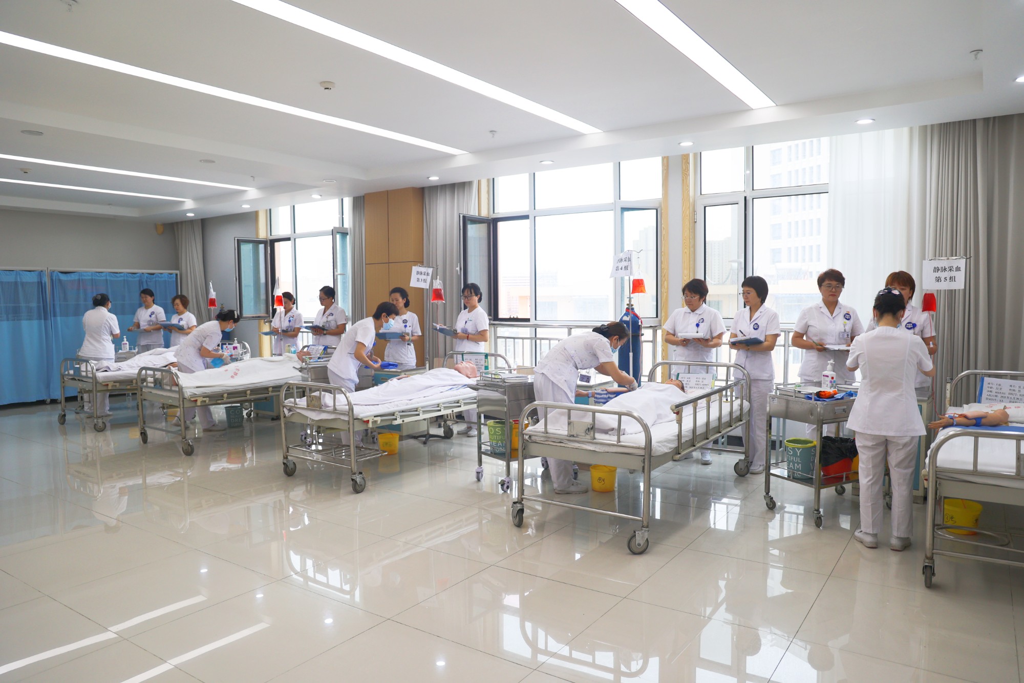 为保障临床科室正常护理工作不受影响,本次考试采用分批次、分时段方式进行。考前专门召开考务会,并对考官开展同质化培训,确保考核标准统一;此前在二季度护理管理委员会上,已针对考核内容进行专项培训,其中临床科室统考项目为静脉采血,特殊科室考核项目为心肺复苏术。