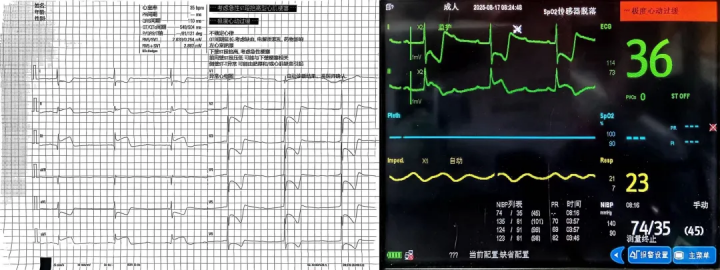该患者入院时病情危急,被诊断为“急性下壁心肌梗死合并心源性休克、III 度房室传导阻滞”,同时伴有严重代谢性酸中毒、乳酸中毒和低氧血症,生命体征极不稳定,随时面临心跳呼吸骤停的风险。尽快重建冠脉血运是挽救患者生命的关键,但经心血管介入团队评估发现,患者心梗发病已超过 14 小时,远超常规急诊介入治疗的时间窗,救治难度陡增。面对这样一位高龄危重患者,我院医护团队始终秉持“不放弃任何一个生命”的信念,以“三抓三促”中“抓攻坚、促突破”的精神,迅速启动应急救治预案。
