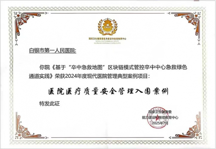 此前,在国家卫生健康委能力建设和继续教育中心组织的2024年度现代医院管理典型案例评选中,医务科团队牵头推进的三项成果均脱颖而出:《基于"卒中急救地图"区块链模式管控卒中中心急救绿色通道实践》《信息互联互通的多学科诊疗模式,提升区域创伤中心救治能力》双项入选“医院医疗质量安全管理入围案例”,《病案首页数据融合分析评价,助力医院医疗质量管理》入选“智慧医院建设与运行入围案例”,三项成果同时获评2024年度现代医院管理典型案例项目,充分体现国家级权威机构对医院管理创新工作的高度认可。