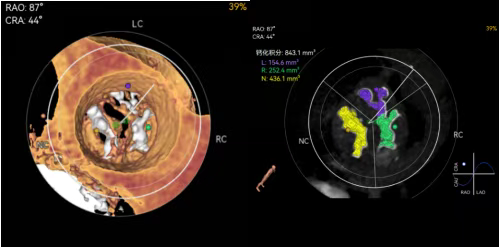 图示:主动脉瓣CT重建影像,白色高亮团块为钙化,钙化量高达843mm3